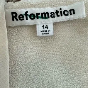 This chic camisole from Reformation features a sleeveless design with delicate spaghetti straps and a cropped length. The cream color adds a touch of elegance, while the minimalist style ensures versatility for any occasion. Crafted with attention to detail, this top is perfect for layering or wearing on its own.