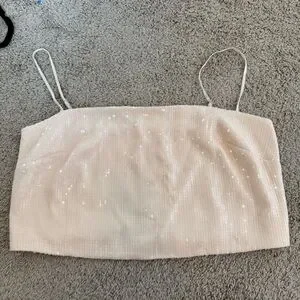 Reformation Elegant Cream Sequin Women's Crop Top Size 14