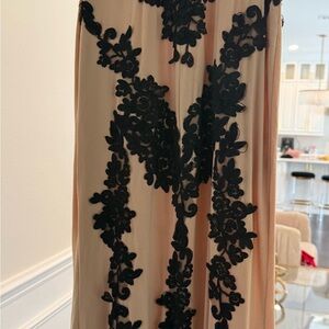 Jovani Tan and Cream Plunge Neck Prom Gown