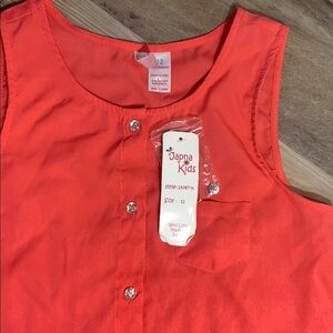 Bright pink color tank with diamond style buttons. Higher in front and lower in back. With pocket on front. 100 percent polyester.
