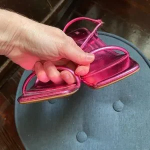 These chic Zara heels feature a vibrant pink hue and a minimalist design with thin straps and a square toe box. Crafted for both style and comfort, they are perfect for dressy occasions.