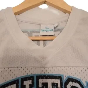 The Disney Lilo & Stitch Cropped Jersey in women's size medium is a casual and comfortable top featuring the beloved characters Lilo & Stitch. Made of polyester jersey fabric, this white short sleeve t-shirt has a round neck and a pullover closure. Suitable for casual occasions, this breathable shirt is machine washable and perfect for fans of the cartoon movie. The regular fit and cartoon theme make it a fun and stylish addition to any woman's wardrobe.