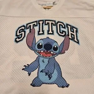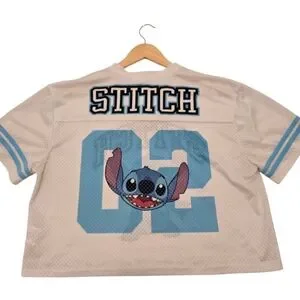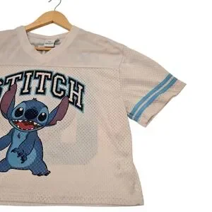 Disney Lilo & Stitch Cropped Jersey, White Women's Size Medium, Pre-owned