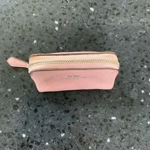 Coach leather mini pouch coin purse cosmetic case pink