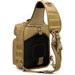 Except for the Molle system , which is of great help to expand more room, there is Five compartments; one main compartment, three front compartments, one back panel pocket and some concealed carry pocket. Great for EDC Sling bag.