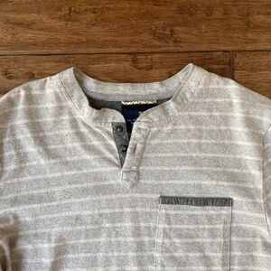 The Roark Revival Mens XL Long Sleeve Henley Gray White Stripe