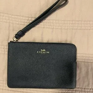 Coach navy blue Textured Wristlet corner zip
