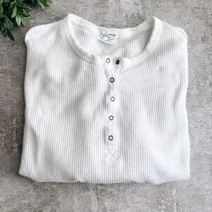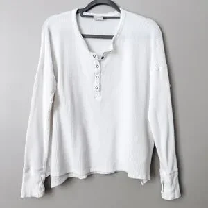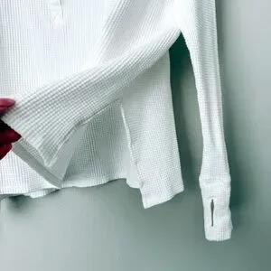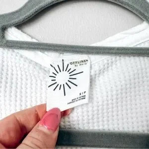 Aerie Offline White Waffle-knit Henley Shirt Size Small