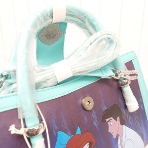 ❗️LIMITED EDITION❗️This handbag features a design inspired by Disney's The Little Mermaid, specifically showcasing Ariel and Prince Eric in the romantic boat. As well as the scene with Ursula. NWT. strap is removal.