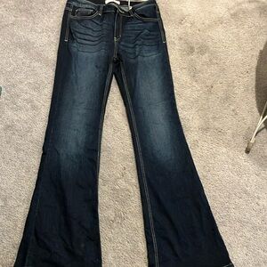 Experience the perfect blend of style and comfort with KanCan's blue flare wide leg jeans. These jeans feature a classic blue hue with subtle fading for a timeless look. The wide leg design offers a flattering silhouette, making them a versatile addition to any wardrobe.