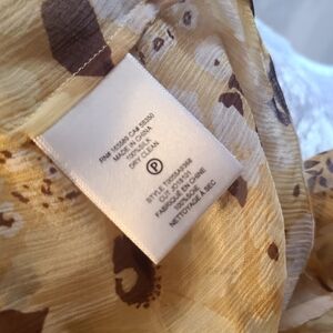 This Joie blouse features a yellow hue with ruffled short sleeves and a chic cropped style. The round neckline and flowy fabric create a relaxed, airy silhouette, perfect for a modern, romantic look.