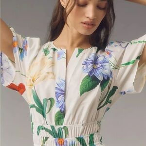 NWT Anthropologie Somerset maxi in ivory / bright floral colorway. Size M. Perfect for any occasion, it features a soft A-line silhouette, flattering smocked waist, and everyday elegant tiered skirt. Falls 55” from shoulder.