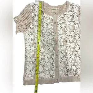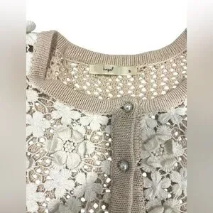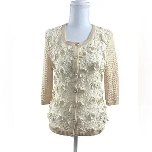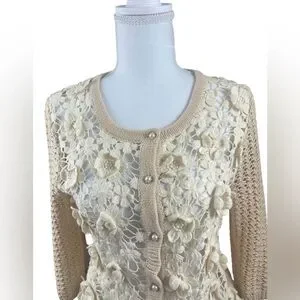Vintage Hazel Cream Floral Crochet Cardigan Sweater Coquette Boho Grandma SMALL