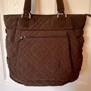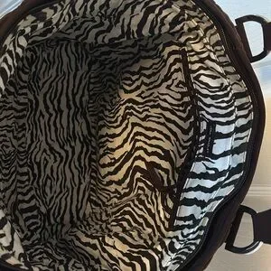 Vera Bradley Large Brown Quilted Shoulder / Tote Bag with Zebra Print Interior