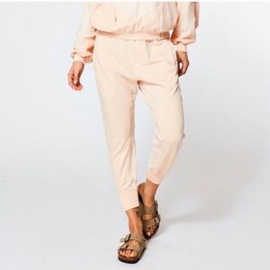 NEW Young Fabulous & Broke High Waisted Peach Odin Joggers Size L. Two front pockets & one back, with satin trim. So soft and comfy yet stylish. Dress them up or keep it casual you will love these joggers!