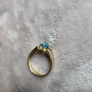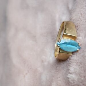 Elegant gold ring featuring a stunning blue gemstone. Perfect for adding a touch of sophistication to any outfit.