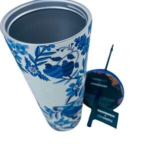 NWT Starbucks x Farm Rio Lenco Azulejo Blue White Stainless Steel Tumbler 24 oz