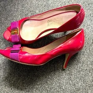 Salvatore Ferragamo hotPink and Purple Heels with Gold Detail