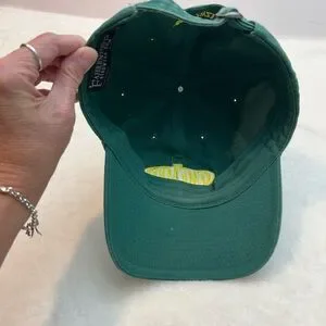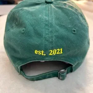 Stylish green baseball cap featuring bold yellow embroidery. Perfect for casual wear.