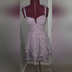 This stunning midi dress by SHEIN features a sweetheart neckline with spaghetti straps, perfect for a wedding guest occasion. The fit and flare design boasts a fitted bodice that flows into a beautifully layered skirt, creating a romantic and feminine silhouette. Crafted in a rich purple hue, this dress exudes elegance and charm.