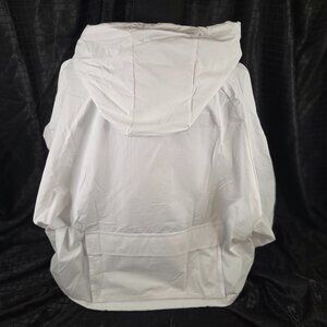 New with tags - Beautiful and stylish white full length zippered windbreaker. Two large pockets with Velcro closure in the front with 2 side slide-in pockets underneath. One extra-large pocket in the back, also with Velcro closure. Elastic detail on inner sleeves.