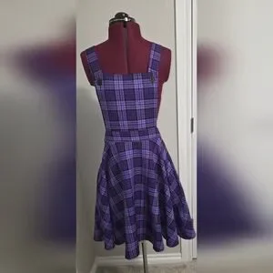 Purple Plaid Overalls Dress