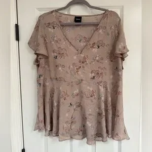 Disney Bambi Tan Flutter Sleeve Peplum Blouse