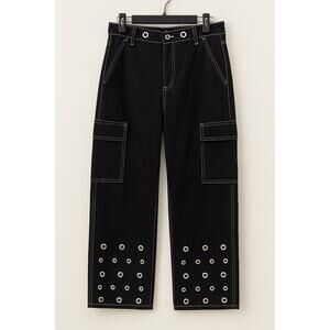 • Style: Cargo pants with grommet details