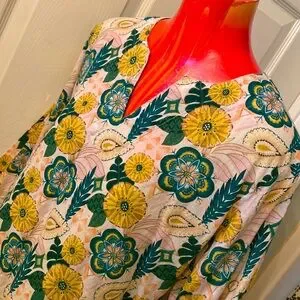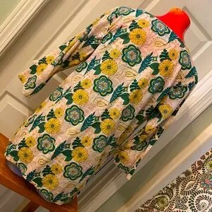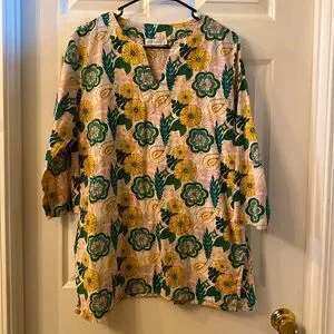 Step out in style with this Mahogany Tunic featuring a striking green, yellow, pink color palette. The long dolman sleeves offer a relaxed fit, making it ideal for casual occasions. Crafted from lightweight 100% Cotton fabric, this tunic ensures comfort and effortless elegance.