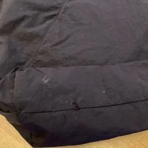 The bag does show some wear. There is a small hole on the bottom of the bag but because the bag is lined nothing can fall out.