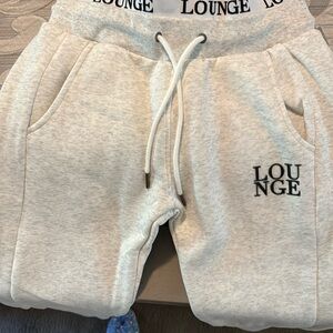 Discover the perfect blend of style and comfort with Lounge's gray track pants. Crafted from a soft cotton blend, these joggers feature a relaxed fit and an elastic waistband with a white drawstring for a secure and comfortable wear. Ideal for both lounging and active days, these pants are a versatile addition to your wardrobe. From a smoke free home !