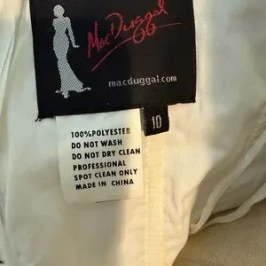 Chic white dress by Mac Duggal. Ideal for formal events.