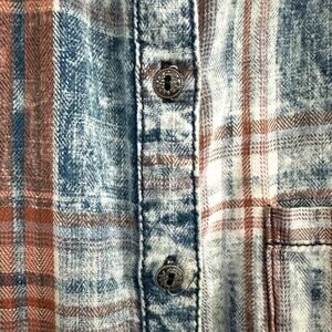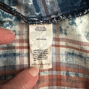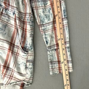 Soft Surroundings Blue & Orange Plaid Peplum Back Long Tunic Button Down Top with Pockets