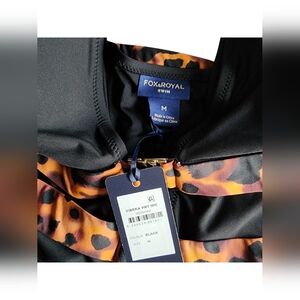 NWT Fox & Royal "Vibeka" 1-Piece Swimsuit - Black Leopard & Gold Accents Side: M