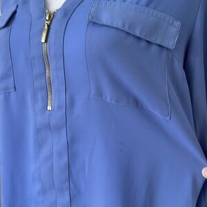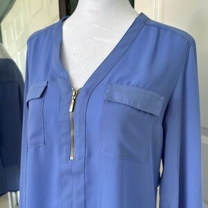 Express Blue Fitted Long Sleeve Blouse - size medium