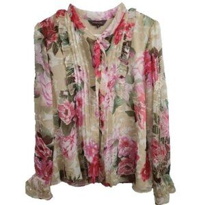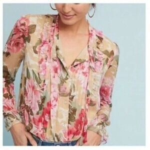 Anthropologie Ranna Gill Womens Top Small Floral Bow Tie Sequined Cottage BOHO