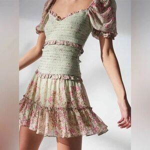 Hermant and Nadina and Floral Green Dress with Pink Accents