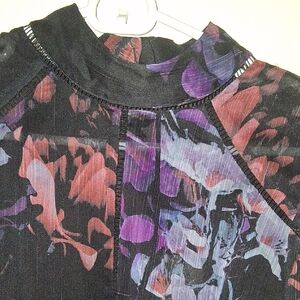 Chic Ted Baker top with vibrant floral design. Features a blend of purple, pink, and black hues. Ted Baker size 4 is size 10 in US.