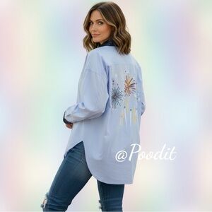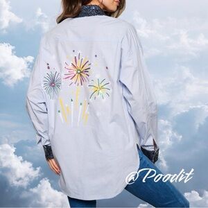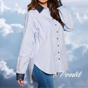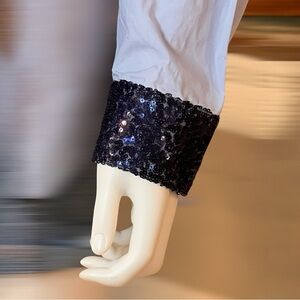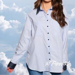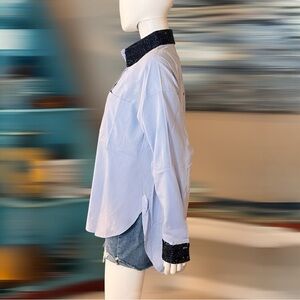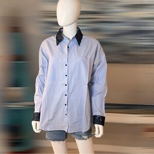 FANTASTIC FAWN button front cotton sequin accent blouse S M L