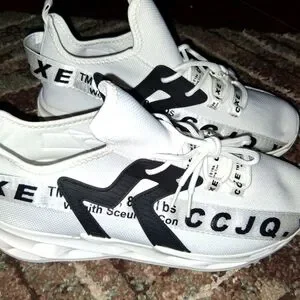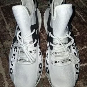 look for other *bogo* items in my closet bundle your likes and i will send buy 1 get 1 free offer to you. Stylish white sneakers with black accents. Features bold text design.these are brand new just took out for pics.
