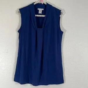 NEW YORK & COMPANY Sleeveless Knot-Front Design Blue Blouse Size Medium New