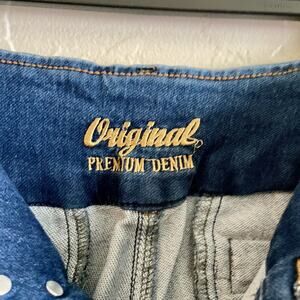 Zoe Fashion Size XS Jeans - Original Premium Denim Ripped Buttons Trendy Stylish. Features all over medium denim color, low rise, faux front and back pockets with embellishment detail, button and zip closure. 97% cotton, 3% lycra.