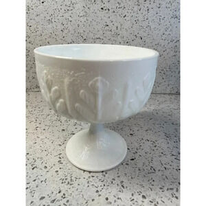 Vintage 1975 FTD Milk Glass Flower Leaf Vase Planter Compote Pedestal Dish Bowl