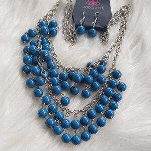 This exquisite Paparazzi necklace showcases a cascade of deep blue light beads, elegantly arranged in a multi-strand design. The vibrant blue beads are beautifully complemented by a silver-toned chain, creating a striking and sophisticated look. Perfect for adding a touch of drama and elegance to any ensemble.