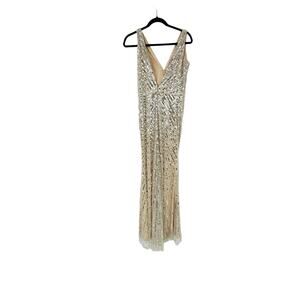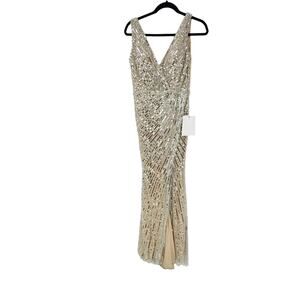 Mac Duggal Sleeveless Diagonal Sequined V-Neck Gown Nude/Silver Size 6 NWT