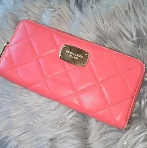 Michael Kors Quilted Leather Large Wallet Coral Mk