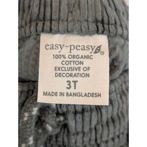 The Ez-Peazy Boy's Green Corduroy Pants in size 3T are a stylish and versatile addition to any young boy's wardrobe. Made from corduroy fabric, these solid green pants feature a pull-on closure for easy dressing and undressing. Perfect for various occasions such as travel, activewear, parties, weddings, and casual outings, these ankle-length pants are both comfortable and fashionable. The brand EZ-Peazy specializes in boys' clothing, making these pants a great choice for any little one.