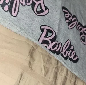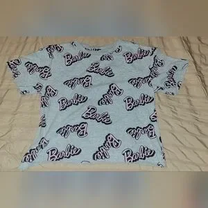 Chic gray tee with iconic Barbie logo. Ideal for everyday style.