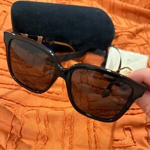 Elegant Gucci sunglasses with sleek black frames and gold accents. Ideal for stylish outings.