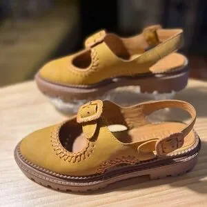 Beklina Maria Mara Sandal - Saffron Nubuck Leather - Size 6.5